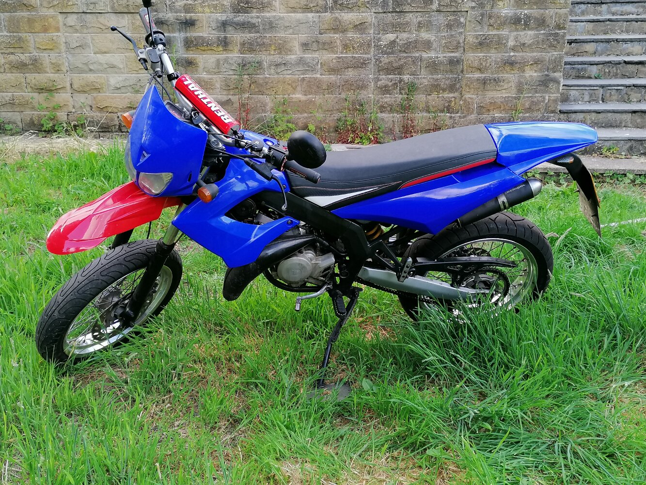 Bought for Luke. Cost 600. I put an Airsal 70 kit and derestricted expansion chamber on. He used it for a year or so until I gor the Derbi Cross City. Kept and partially restored it.