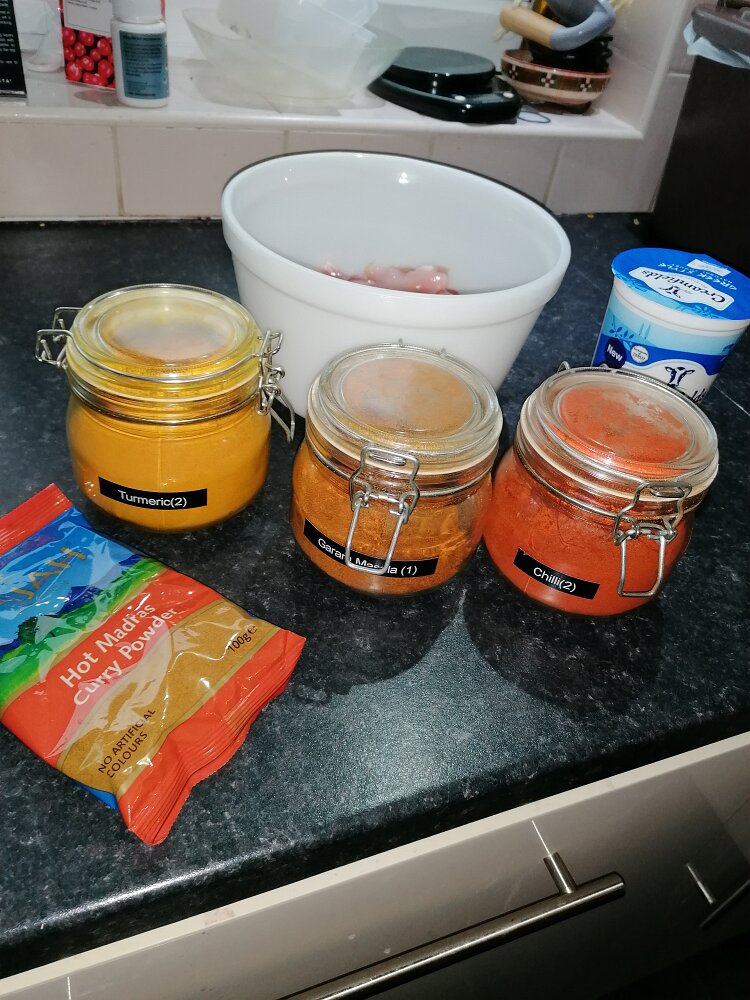 IMG_20210314_203651IMG_20210314_203701IMG_20210314_203941IngredientsChicken Marinated with spices shown - Garam Masala not used.Chicken marinated for a couple of hours, now frying it.Chicken done - Veggies turnhttps://www.youtube.com/watch?v=fh3VDTKPwuQ&t=916s